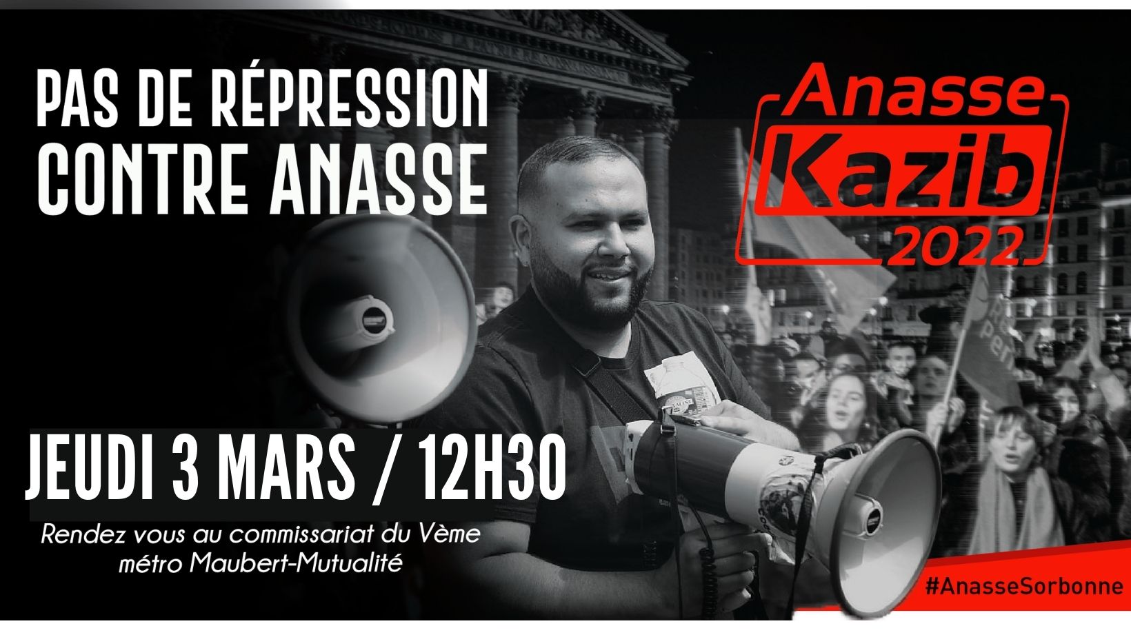 Rassemblement de solidarité : pas de répression contre Anasse Kazib !